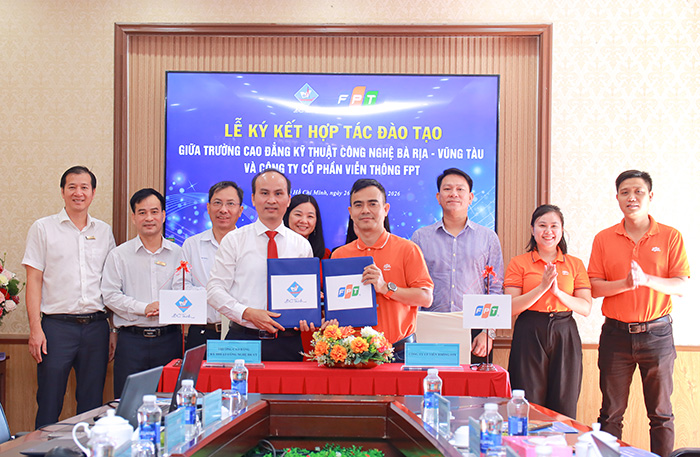 Ngày 26/01/2026, Trường Cao đẳng Kỹ thuật Công nghệ Bà Rịa – Vũng Tàu (BCTech) đã ký kết Biên bản thỏa thuận hợp tác với Công ty Cổ phần Viễn thông FPT (FPT Telecom), nhằm đẩy mạnh liên kết đào tạo và phát triển nguồn nhân lực kỹ thuật.