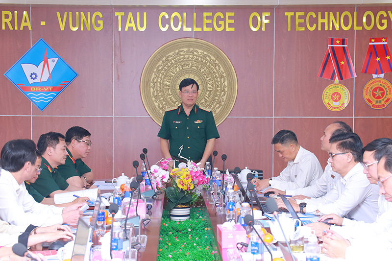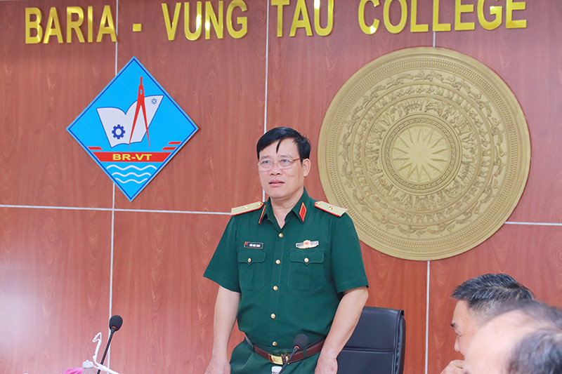 Báo cáo với Đoàn công tác, Tiến Sĩ Ngô Xuân Khoát cho biết trường luôn xác định môn Giáo dục Quốc phòng và an ninh là nội dung quan trọng trong chương trình đào tạo, góp phần giáo dục toàn diện cho sinh viên. Trong thời gian qua, trường đã thực hiện nghiêm túc, đúng quy định về chương trình, kế hoạch giảng dạy, quản lý sinh viên và cấp phát chứng chỉ.