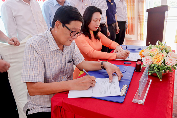 Mr. Le Quoc Binh, Head of the Evaluation Team, and Ms. Truong Huynh Nhu, Principal of the school, signed the minutes confirming the completion of the official survey
