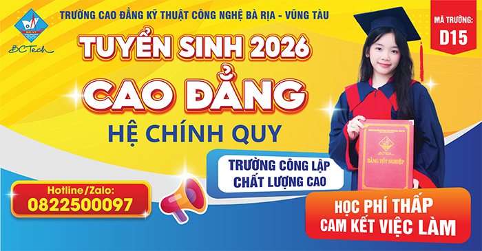 Trường CĐ Kỹ thuật Công nghệ BR-VT có môi trường học tập thân thiện, giảng viên có chuyên môn cao, trang thiết bị máy móc hiện đại không khác gì so với ngoài doanh nghiệp. Sau khi tốt nghiệp và làm việc 2 năm, em được bổ nhiệm làm team leader và thu nhập khá ổn định.